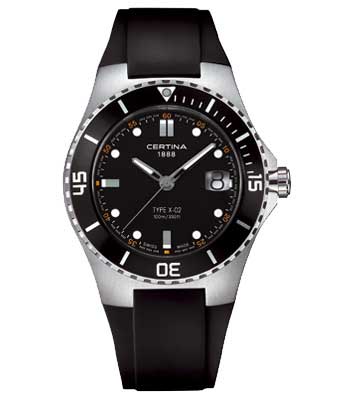 Koperta zegarka Certina DS Type X-02 wykonana została ze stali szlachetnej, jest w okrągłym kształcie. Wykonanie z wysokiej jakości stopu antyalergicznej stali szlachetnej 316L ochroni Cię przed wystąpieniem alergii skórnych. Dodatkowo stop 316L charakteryzuje się podwyższoną odpornością przed czynnikami zewnętrznymi. Czasomierz Certina C260.7181.42.61 został wyposażony w bardzo dokładny mechanizm kwarcowy (ETA F06.111) zasilany wytrzymałą baterią. W mechanizmie kwarcowym kontrolowane elektronicznie drgania są przekazywane przez specjalnie wyprodukowany syntetyczny kryształ kwarcu. Dokładność drgań gwarantuje wysoką precyzję mechanizmów kwarcowych. Energia zasilająca mechanizm Tarcza jest ciemna, chroni ją wysokiej klasy nierysujące się szkiełko szafirowe. Szkło produkowane w oparciu o wysokiej jakości tlenek glinu, odporne na zarysowania. Siedem razy twardsze niż stal (twardość: 2200 - 2300 w skali Vickersa), bardzo trudne do zarysowania.